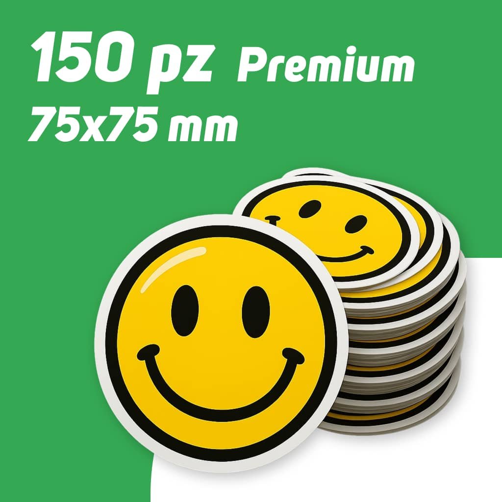 150 Adesivi Rotondi Premium 75 mm a € 39,90