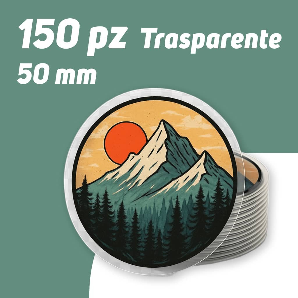 ✔️ 150 adesivi trasparenti rotondi (50 mm)